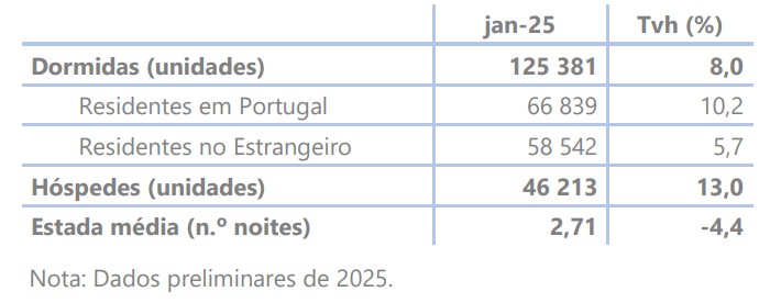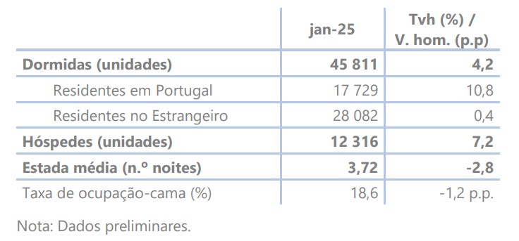 Entre janeiro de 2023 e janeiro de 2025, no conjunto dos estabelecimentos de alojamento turístico, o