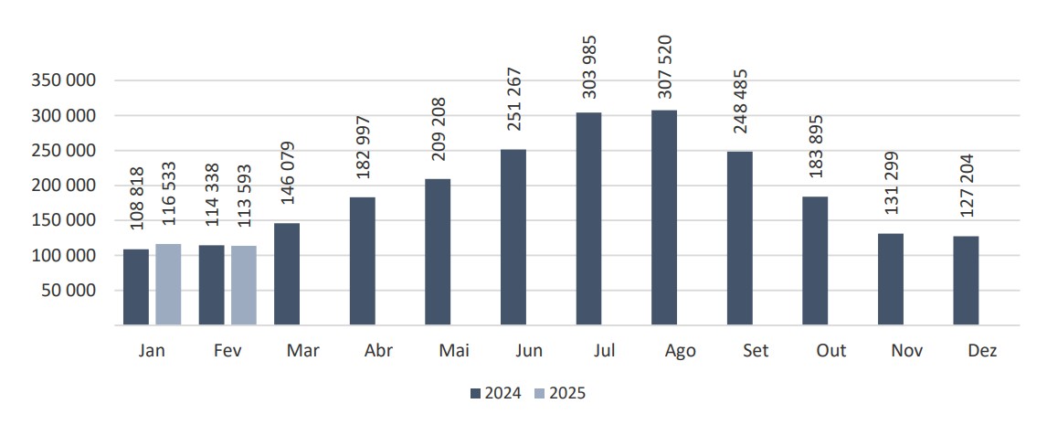 Movimento de Passageiros Aéreos – fevereiro 2025