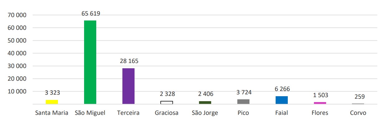 Por ilha, as que apresentaram variação homóloga mensal positiva no desembarque de passageiros aéreos foram: Graciosa (13,5%), Faial (0,8%) e São Miguel (inferior a 0,1%). Em sentido inverso, Corvo (-13,4%), Pico (-11,8%), São Jorge (-5,3%), Santa Maria (-5,2%), Flores (-4,1%) e Terceira (-0,6%) apresentaram variação homóloga mensal negativa no desembarque de passageiros.