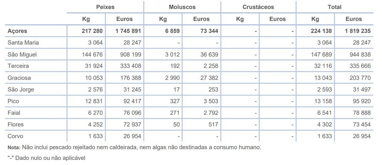Mais de metade das descargas foram efetuadas na ilha de São Miguel (65,9%) e 51,9% do valor total das vendas foi gerado nesta ilha. A ilha das Flores apresentou o preço médio mais elevado (17,07 €/kg), valor consideravelmente superior à média regional (8,12 €/kg).