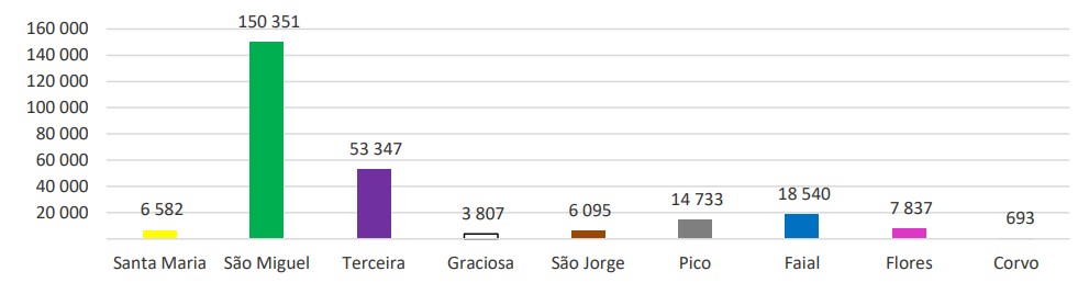Por ilha, todas apresentaram variação homóloga mensal positiva no desembarque de passageiros aéreos: Corvo (20,3%), Faial (14,8%), São Jorge (10,8%), Flores (10,4%), Pico (8,6%), Santa Maria (8,6%), Graciosa (7,1%), Terceira (6,6%) e São Miguel (1,1%).