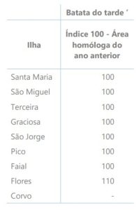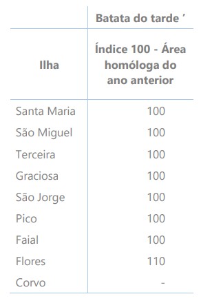 A área plantada com batata do tarde manteve-se idêntica à do ano anterior, apenas se registando algum aumento na ilha das Flores. As culturas já nascidas apresentam, na generalidade, bom desenvolvimento vegetativo.