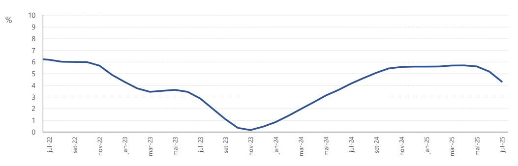 No mês de julho de 2025, o Indicador do Consumo Privado para os Açores (ICP-Açores) registou, em termos homólogos, um acréscimo de 4,3%, verificando-se uma diminuição de 0,9 pontos percentuais em relação ao valor revisto do mês anterior.